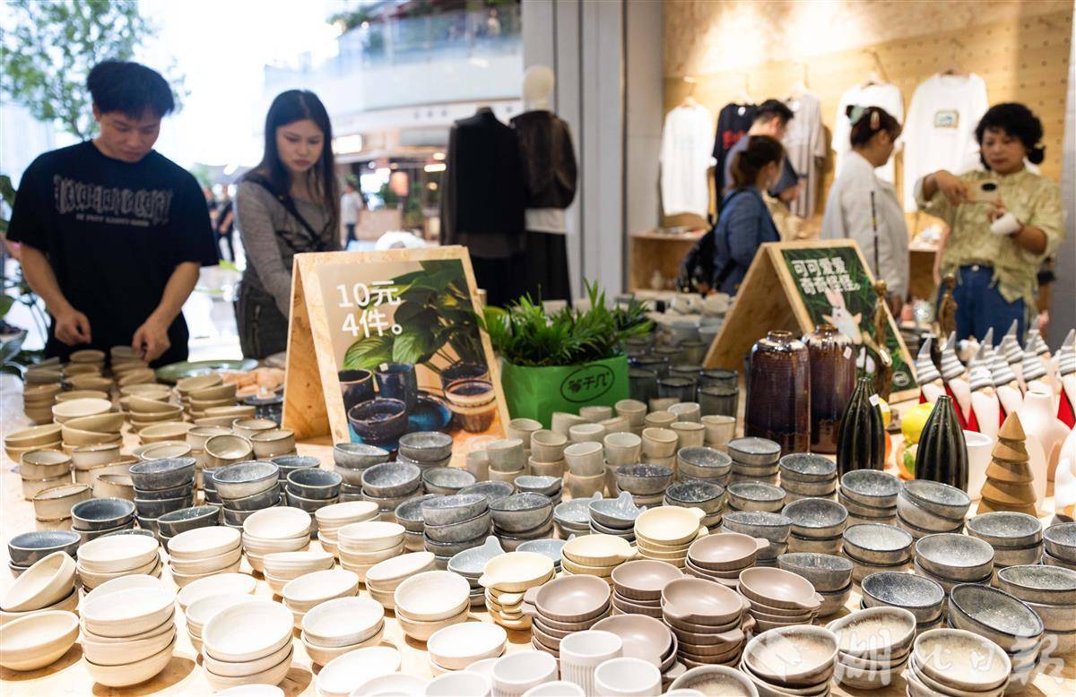 10月4日,武昌滨江天街,年轻人在商场里感受着“捡瓷”的独特趣味。