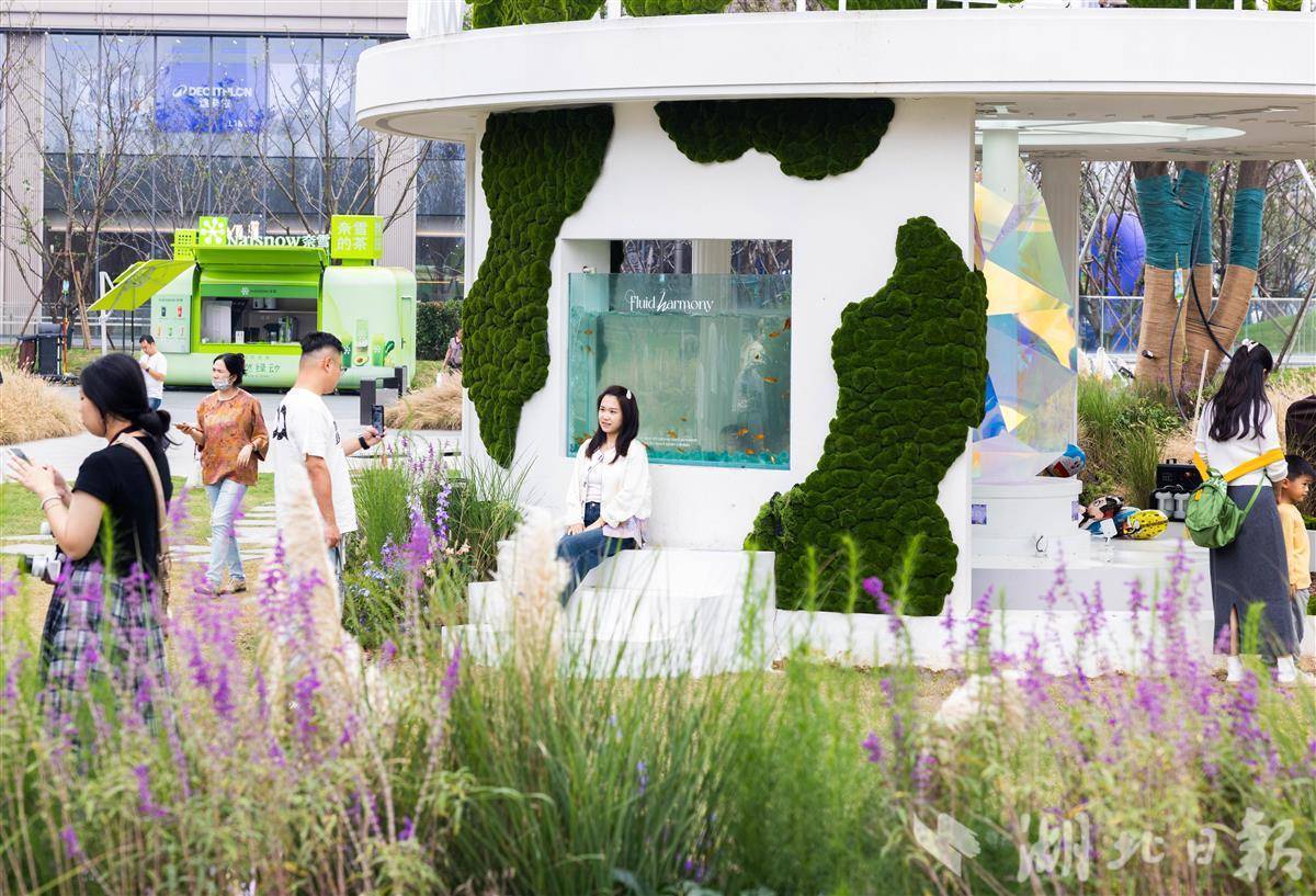 10月4日,武汉武昌滨江天街人气火爆,顾客在“公园式”商业空间中购物、休憩、打卡拍照,享受“逛公园”般的悠闲与惬意。作为武汉首个自带1.3万平方米绿地公园的商业综合体项目,这里将自然生态与商业消费有机融合,让市民在商场里也能体验微度假的乐趣。(湖北日报全媒记者 薛婷 摄)